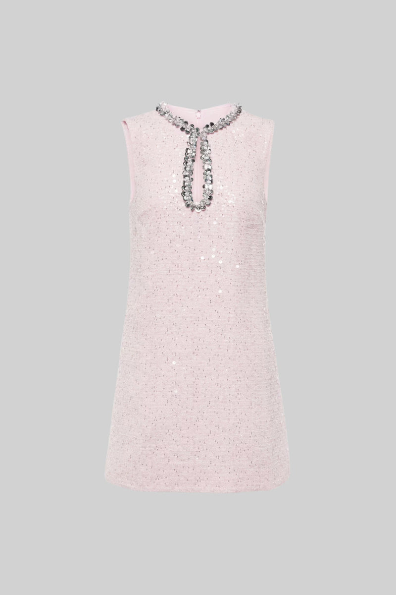 Robe Mini Rose Texturée Sans Manches Avec Détails Étincelants Au Col
